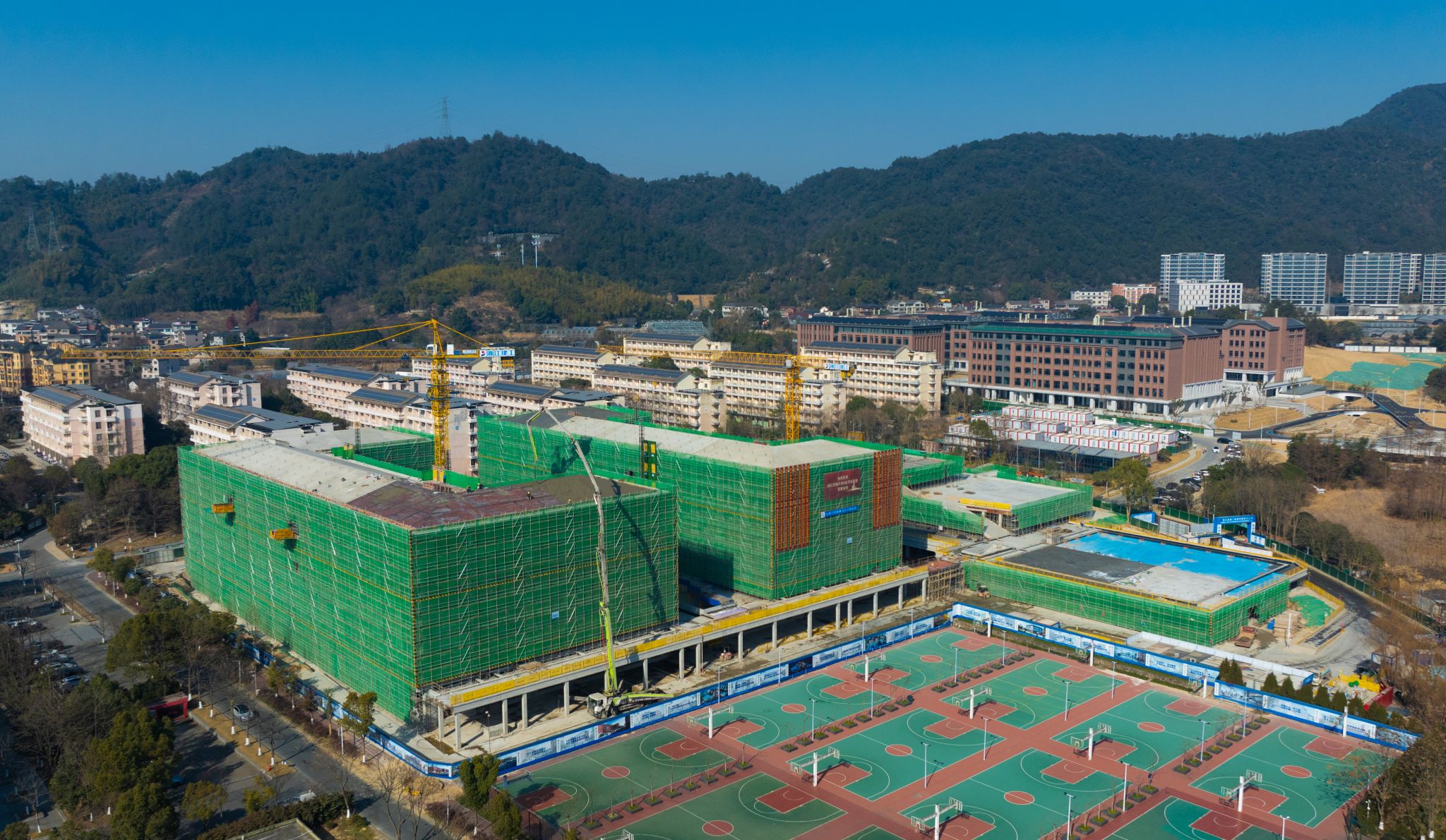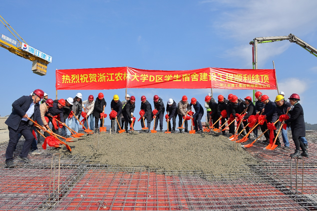 歲末深冬,陽光明媚。1月18日,浙江農林大學東湖校區D區學生宿舍建設工程施工現場熱鬧非凡,伴隨著最后一方混凝土的澆筑到位,D區學生宿舍建設工程兩幢宿舍樓主體結構順利結頂。