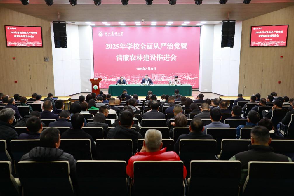 3月31日下午,學(xué)校召開2025年全面從嚴(yán)治黨暨清廉農(nóng)林建設(shè)推進(jìn)會,深入學(xué)習(xí)貫徹二十屆中央紀(jì)委四次全會和省紀(jì)委十五屆四次全會精神,全面落實上級黨組織關(guān)于全面從嚴(yán)治黨工作部署要求,總結(jié)過去一年學(xué)校全面從嚴(yán)治黨工作,研究部署2025年重點任務(wù)。校黨委書記朱斌出席會議并講話。校黨委副書記施美紅主持會議。校紀(jì)委書記包松永部署學(xué)校紀(jì)檢監(jiān)察工作。