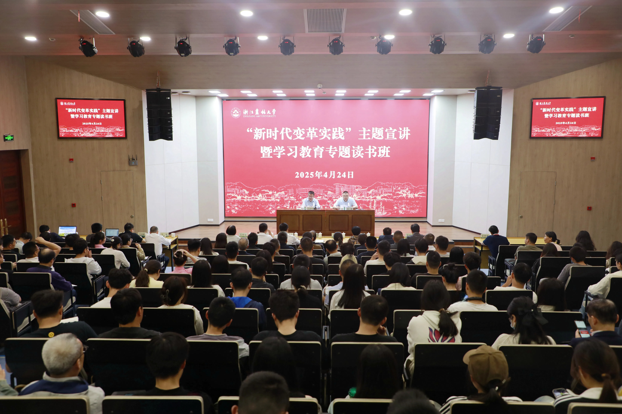 4月24日,“新時代變革實踐”主題宣講活動在浙江農林大學東湖校區舉行。省委農辦主任、省農業農村廳廳長王通林作題為《以“千萬工程”牽引城鄉融合發展縮小“三大差距”推進共同富裕先行示范的探索和實踐》的主題宣講。校黨委書記朱斌主持。