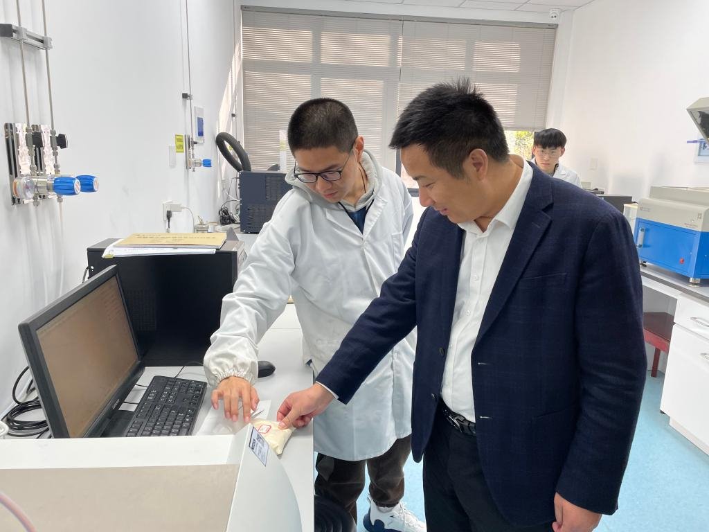 徐愛俊實地查看了分析測試中心的實驗室建設(shè)和儀器設(shè)備運行情況,與儀器管理老師和測試學生就設(shè)備運行狀況、操作規(guī)范與使用體驗等進行現(xiàn)場交流。國家工程中心相關(guān)負責人匯報了中心建設(shè)過程、儀器設(shè)備配置、管理運行模式和未來規(guī)劃等情況。