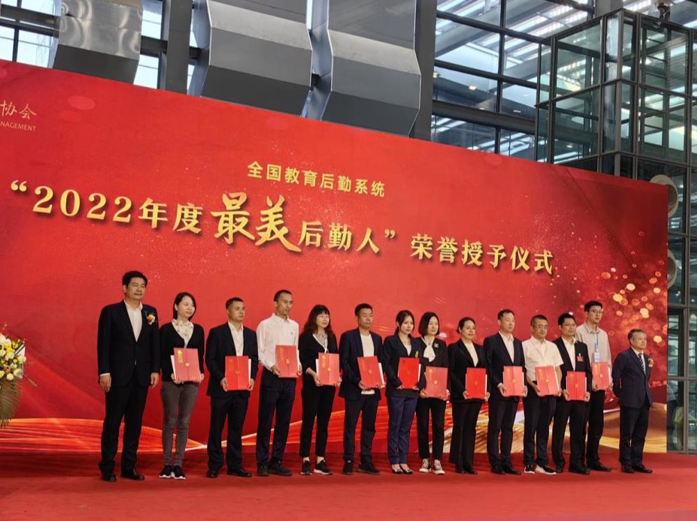 展會進行了全國教育后勤系統“2022年度‘最美后勤人’”榮譽授予及第一批“后勤服務育人勞動教育示范基地”授牌儀式。我校后勤中心榮獲中國教育后勤協會“2022年度最美后勤人”團隊獎,并被授予第一批“后勤服務育人勞動教育示范基地”。