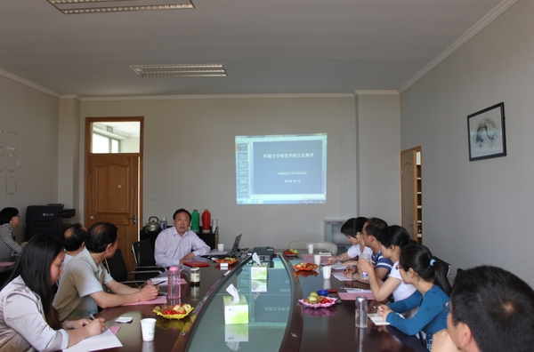 聘任儀式后,蔡玉輝教授為全院教授作了題為《外國文學研究中的文化批評》專題講座。講座從文化批評的緣起和流變梳理了英美文學的文化批評理論,以“《沙士比亞的自由》作家與社會現實的關系”、“記憶視角下的《長日留痕》”、“財產關系視角下的《簡·愛》”三篇學術研究著作為例,講述了文化批評理論在作品中運作。蔡玉輝教授語言生動幽默,研究方法新穎,獲得教師一致好評。講座后,吳笛教授、蔡玉輝教授與教師進行了學術交流。