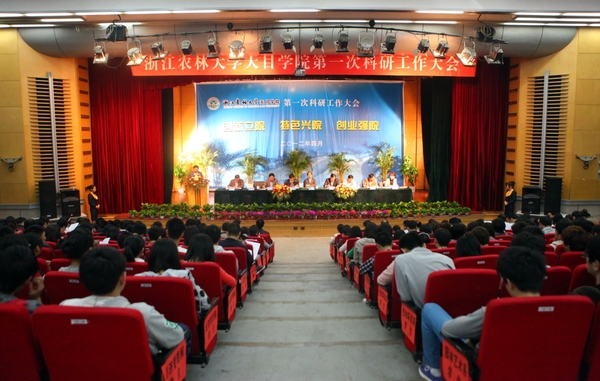 浙農(nóng)林大新聞網(wǎng)訊 在學(xué)校頒布實施中長期發(fā)展規(guī)劃、扎實推進“學(xué)科建設(shè)年”工作,學(xué)院新校區(qū)建設(shè)工程奠基開工、加快推進規(guī)范設(shè)置設(shè)置工作之際,為開創(chuàng)學(xué)院科研工作新局面,4月13日下午,天目學(xué)院在衣錦報告廳舉行第一次科研工作大會。校長周國模,副校長金佩華,校黨委委員、科技處處長陳永富,以及研工部負責(zé)人、天目學(xué)院領(lǐng)導(dǎo)班子成員出席大會。大會由學(xué)院黨委書記楊黎明主持,學(xué)院全體教職工、學(xué)生代表參加了大會。