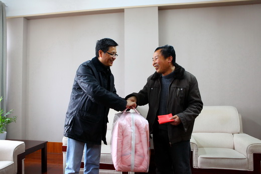 浙農(nóng)林大新聞網(wǎng)訊 1月11日下午,新春佳節(jié)即將來臨之際,校黨委書記宣勇在校辦負(fù)責(zé)人的陪同下,專程前往杭州華旺紙業(yè)集團(tuán)有限公司看望慰問結(jié)對(duì)幫扶的困難群眾焦新安和蔣建國。宣勇親切地詢問他們的身體狀況和生活情況,把慰問金和米、油、棉被等慰問品送到他們手上,并向他們致以節(jié)日的問候和新春的祝福。