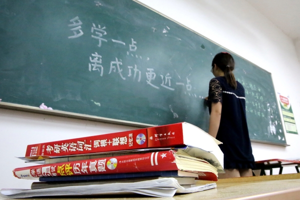 暑假期間,我校同學以各種方式歡度假期,那些選擇留校的同學們仍然在為科研、學習等忙碌著。他們利用暑假忙著學習做實驗,有的忙著準備畢業論文,有的忙著考研復習,有的則參加培訓機構做老師,他們的暑假過得很忙很充實。圖為工程學院一位同學在考研教室的黑板上寫下“多學一點 離成功更近一點”,以激勵自己。