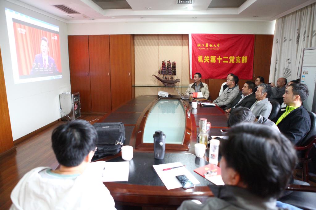 為更好地學習宣傳黨的十九大精神,學校此前專門發出《關于組織師生收聽收看黨的十九大會議盛況的通知》,要求各黨委(總支)、直支組織本單位師生員工收聽、收看黨的十九大開幕會盛況。校園里處處洋溢著慶祝十九大召開的喜慶氣氛,表達著浙農林人愛黨情懷和永遠跟黨走的堅定決心。