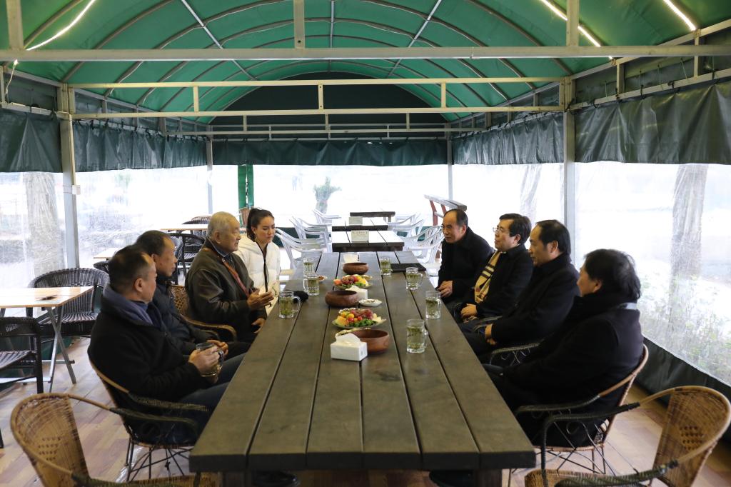 12月23日下午,臺胞陳每文先生一行到東湖校區,在古井“飲水思源”碑處與學校領導會面座談。校黨委書記周國模、校長應義斌、副校長金佩華出席座談。