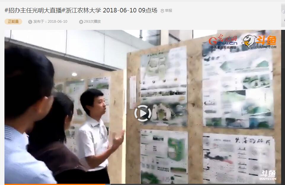據介紹,“2018高校招辦主任光明百場直播”是光明日報今年高校招生季重磅推出的直播活動,通過融媒體傳播的手段,以公眾喜聞樂見的形式,宣傳高考招生制度改革最新成果,展現中國高等教育在雙一流建設進程中取得的新進展,為考生和家長提供多方位教育信息服務,今年全國共有北京大學、清華大學等108所高校參與直播,其中浙江省參與光明大直播的有浙江大學、浙江農林大學等4所高校。
