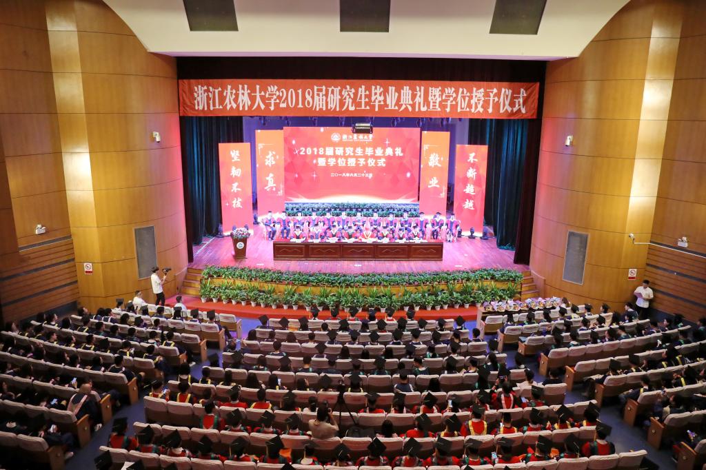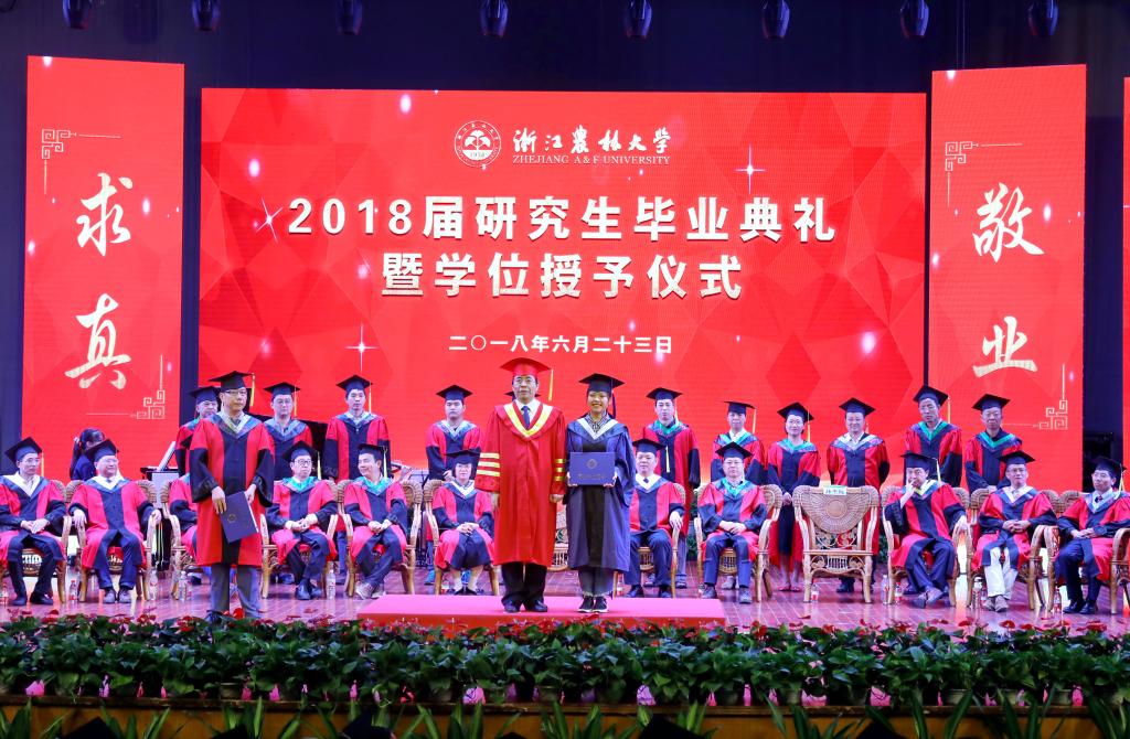 今天,是2018屆584名博士研究生和碩士研究生的畢業之期,而后意味著你們即將踏入社會,繼續放飛夢想。作為你們的校長和老師,此時此刻,我的心中有一個關于時間的矛盾:我很想時間能夠快些走,好讓優秀的你們盡快在時代的熔爐里千錘百煉、淬火成鋼,早日成為國家、民族、社會之棟梁。同時我也希望時間能夠慢點走,因為師生間的情感與不舍,讓我和所有老師們不愿如此善良、如此努力、如此優秀的你們離開農林大學這個溫暖的“大家庭”。但是,在這你們完成學業并走向未來的重要時刻,我首先還是要向順利完成學業并全面成長的各位同學表示熱烈的祝賀!另外,在座的同學們非常幸運,因為你們在校期間親自見證了學校在加強內涵建設和提升辦學實力上先后取得的一系列重大突破,如:成功獲批博士學位授予單位,同時獲得五個一級學科博士學位授權點;順利入選浙江省重點建設高校;植物學與動物科學、工程學2個學科領域同時進入ESI全球1%;獲批浙江省屬高校首個國家重點實驗室等等。在此,我特別想說的是,這些突破性成就的取得與在座各位同學的辛勤努力是分不開的。因此,我代表學校向你們表示衷心的感謝!
