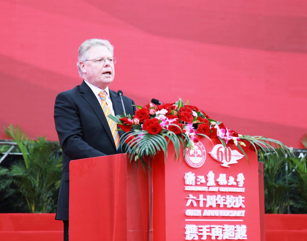 伊利諾伊大學香檳分校副校長及教務長Andreas Cangellaris、國際竹藤組織總干事Hans Friederich分別發言,祝賀學校60華誕,希望繼續深化合作,成為親密伙伴。