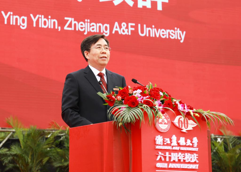 錢塘澎湃,天目巍昂,錢王故里,學韻悠長。今天,美麗的東湖之畔,高朋滿座、嘉賓云集。我們在此隆重集會,共同紀念和慶祝浙江農林大學60華誕。在此,我謹代表學校向拔冗參加校慶紀念大會的各位領導、各位來賓、海內外校友表示熱烈的歡迎和衷心的感謝!向全校師生員工、老領導、離退休老同志致以美好的祝愿和親切的問候!
