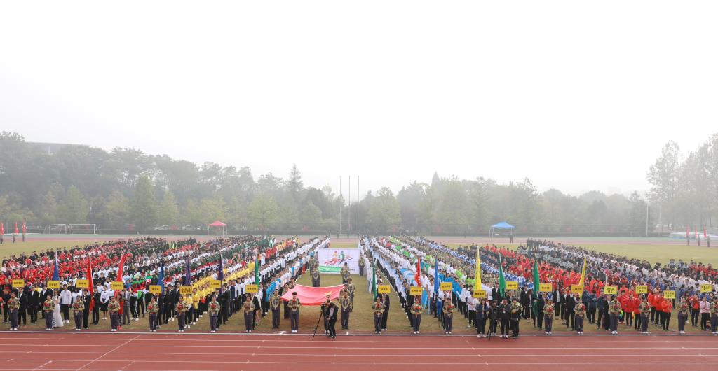 學校相關部門負責人、運動會組委會全體成員出席開閉幕式。本屆運動會學生組共有14支代表隊927名運動員參加31個項目的比賽,教工組共有17支代表隊934名運動員參8個項目的比賽。