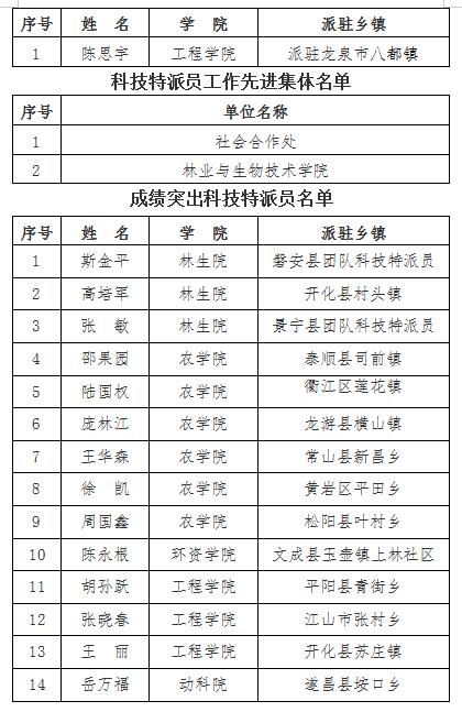 浙江省突出貢獻科技特派員名單