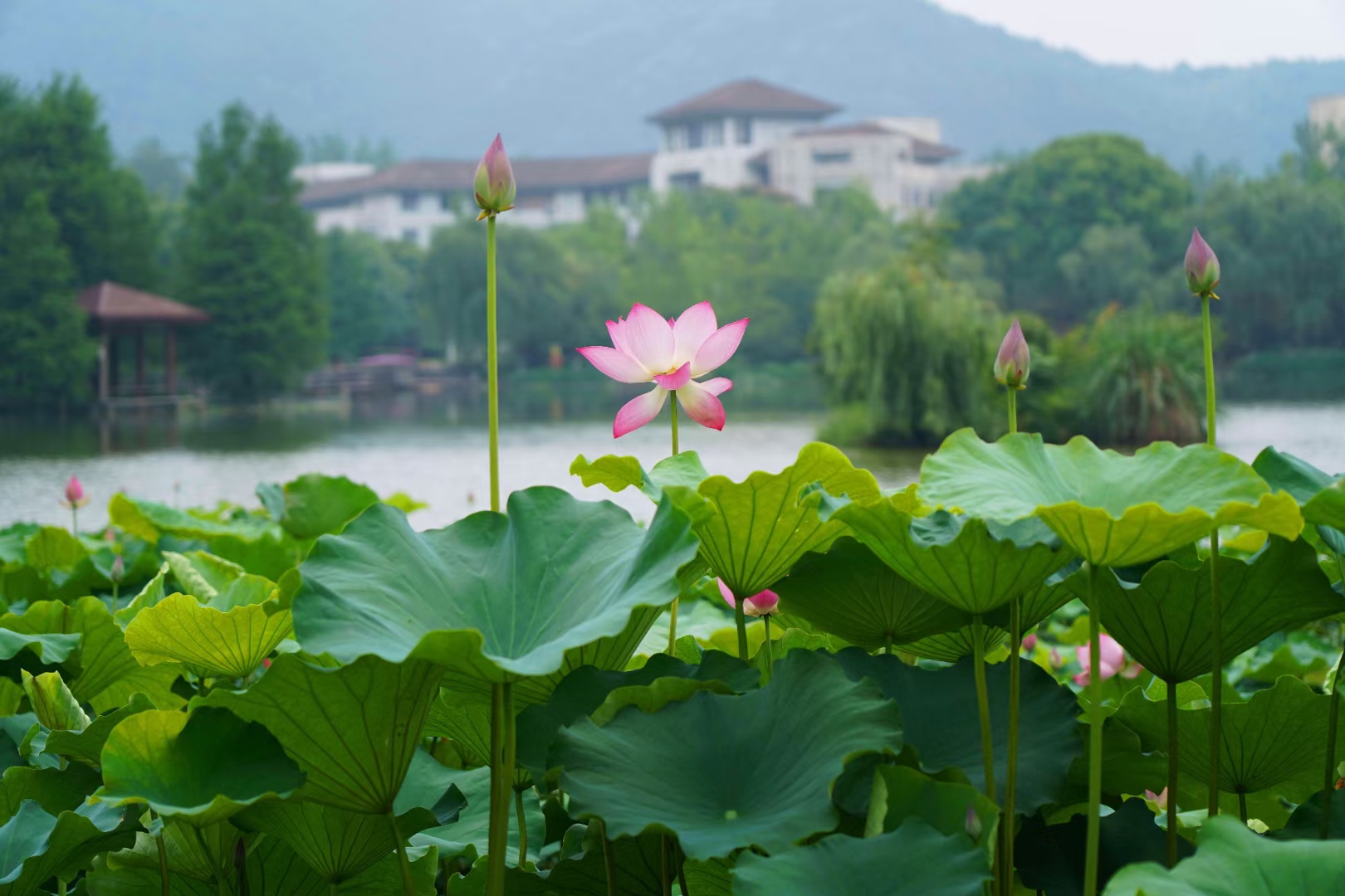 沐浴在夏日暖陽中的浙農(nóng)林,道不盡的綠樹陰濃,百花鮮妍。清澈透明的天空,時斷時續(xù)的蟬鳴,隨風搖曳的綠葉,在這充滿悸動與活力的夏日中,相得益彰,令人沉醉。賞蔥蔥綠意,感濃蔭幽靜。在橫斜交錯、深淺不一的蒼翠欲滴中,一片綠葉的朦朧睡意也清晰可見,夏天在五舟廣場上翩然起舞。