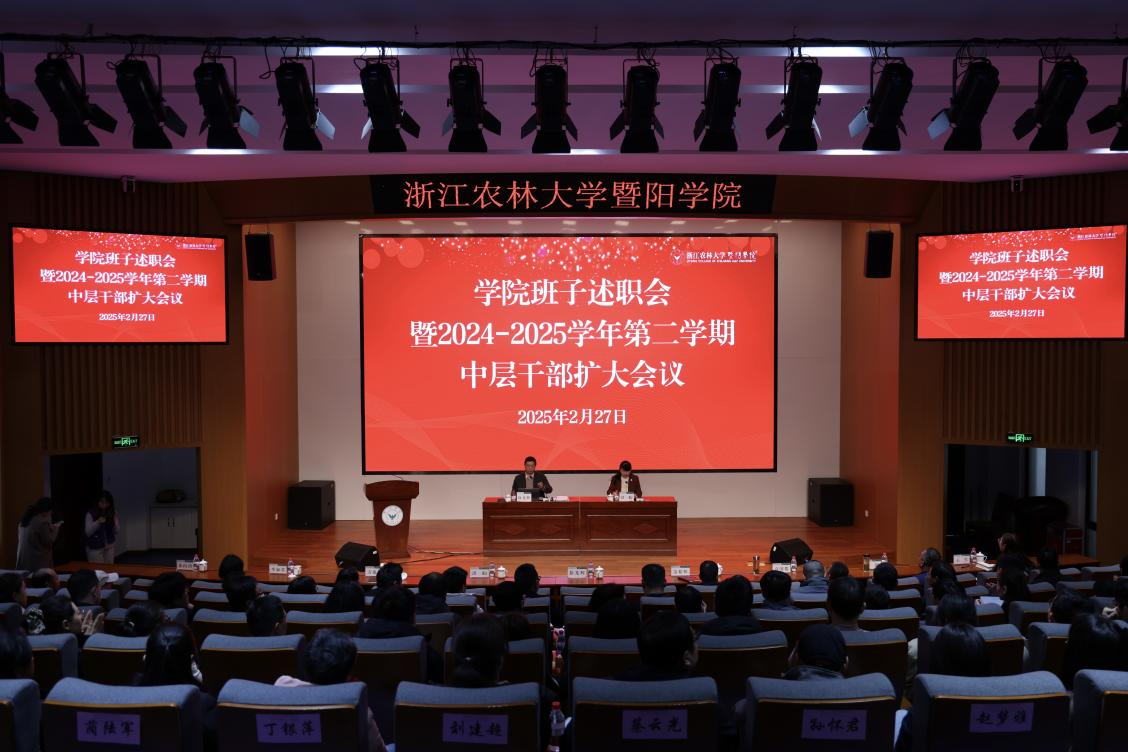 2月27日,暨陽(yáng)學(xué)院班子述職會(huì)暨2024-2025學(xué)年第二學(xué)期中層干部擴(kuò)大會(huì)議在學(xué)院智能報(bào)告廳召開(kāi)。