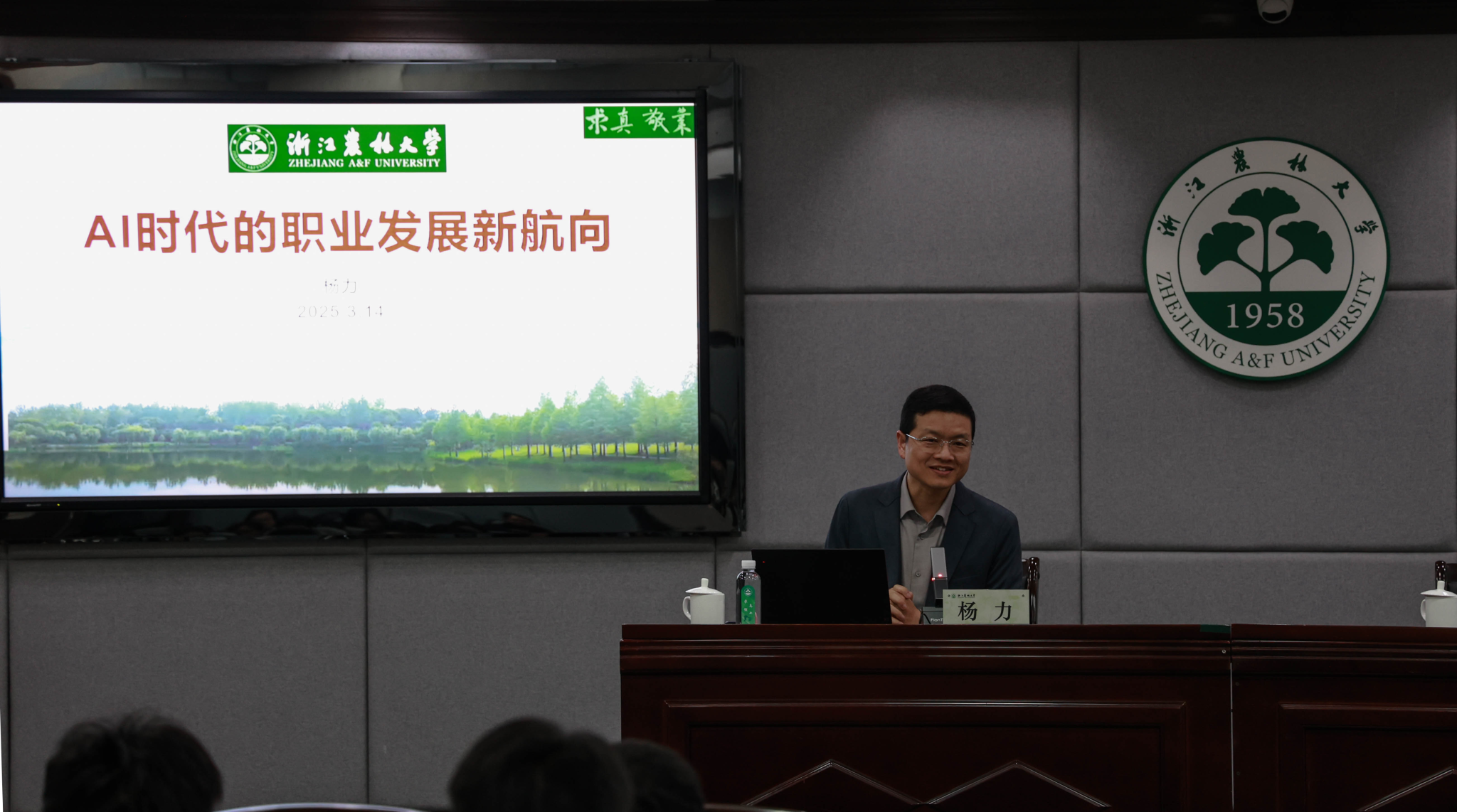 本次活動邀請中國人工智能學會教育工作委員會委員、中國工業合作協會仿真技術產業分會專家委員會委員、中國宇航學會會員、浙江省人工智能學會高級會員楊力,作題為《AI時代的職業發展新航向》的主題報告,楊力老師從AI與就業形勢關系、AI發展現狀、AI使用指南以及案例分享等幾個維度,剖析了在人工智能技術浪潮下,學生應當如何從當下做起,提高自身核心競爭力,把握職業機遇。