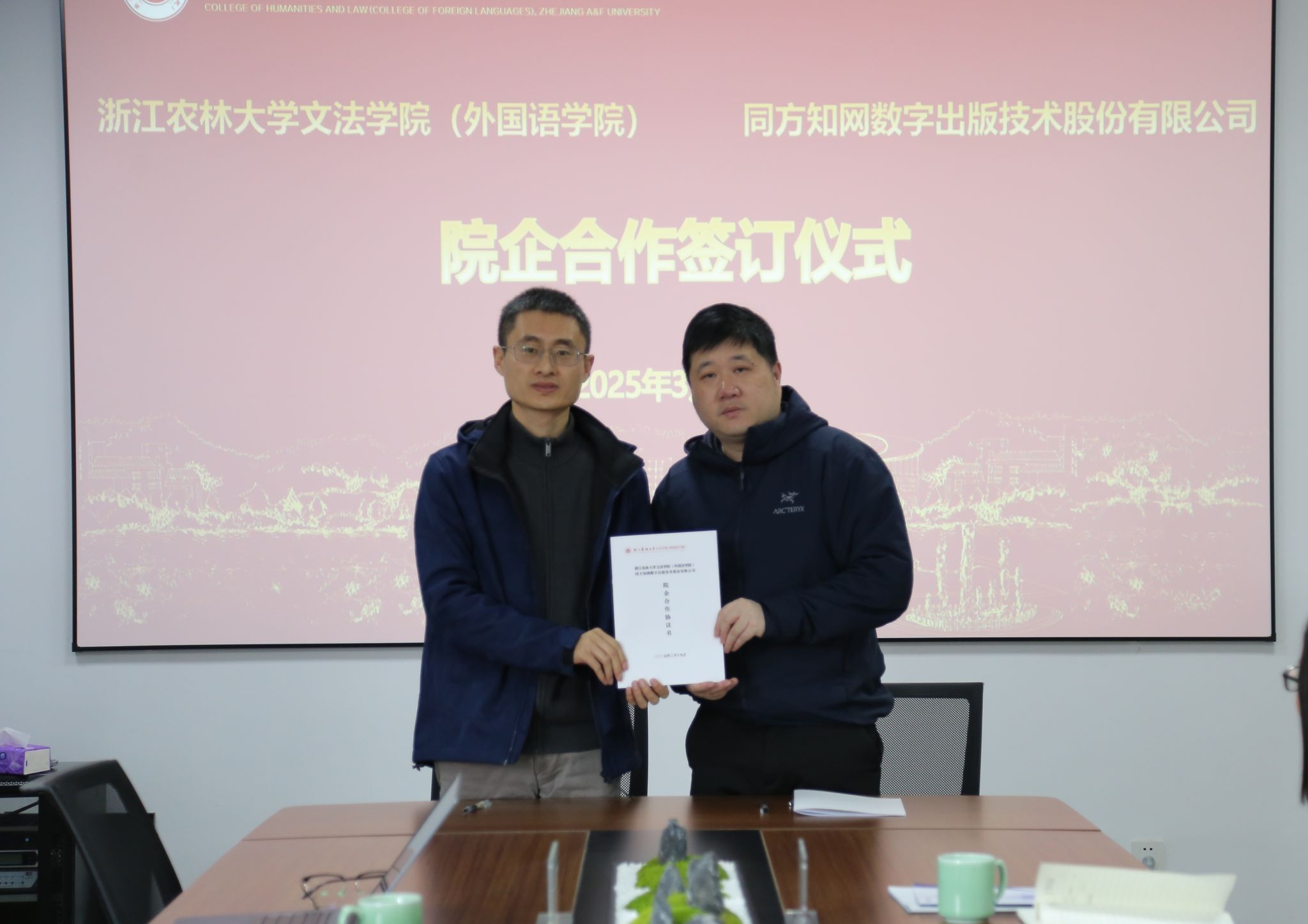 近日,文法學院與同方知網數字出版技術股份有限公司簽署合作協議。文法學院副書記徐達,同方知網數字出版技術股份有限公司王曉勇、吳凱出席簽約儀式。