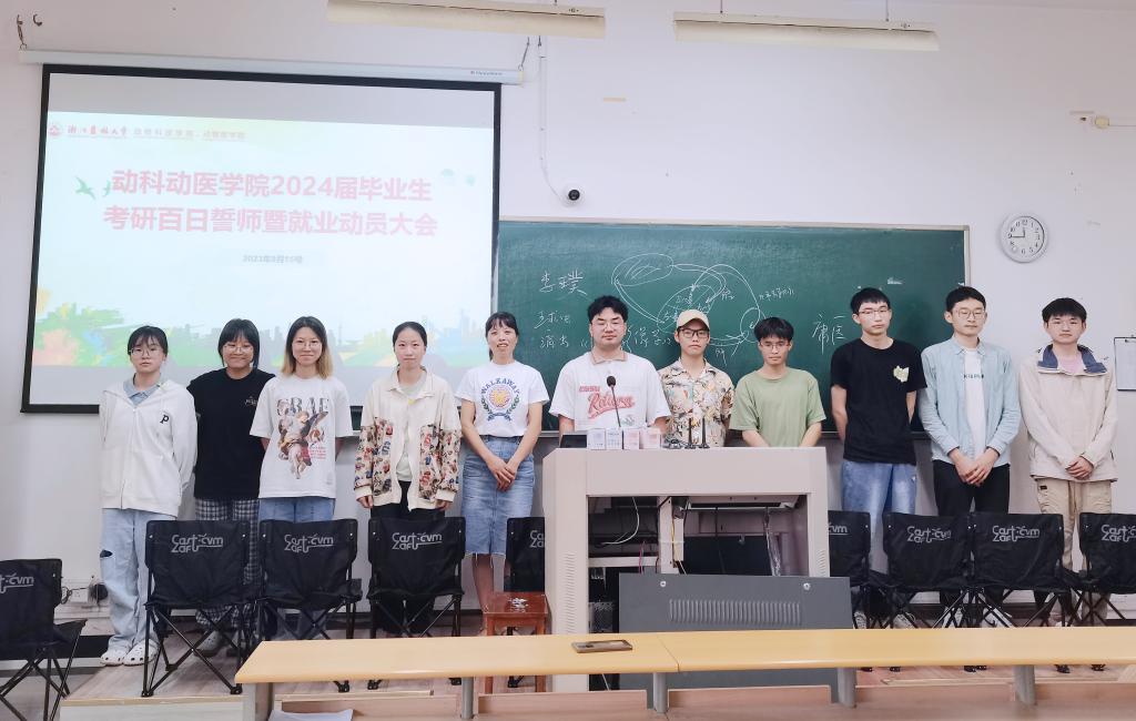 9月15日,動(dòng)科動(dòng)醫(yī)學(xué)院召開2024屆畢業(yè)生考研百日誓師暨就業(yè)動(dòng)員大會(huì)。學(xué)院黨委書記蘇小菱出席會(huì)議并作誓師動(dòng)員講話,輔導(dǎo)員和全體2024屆本科畢業(yè)生參加本次會(huì)議。