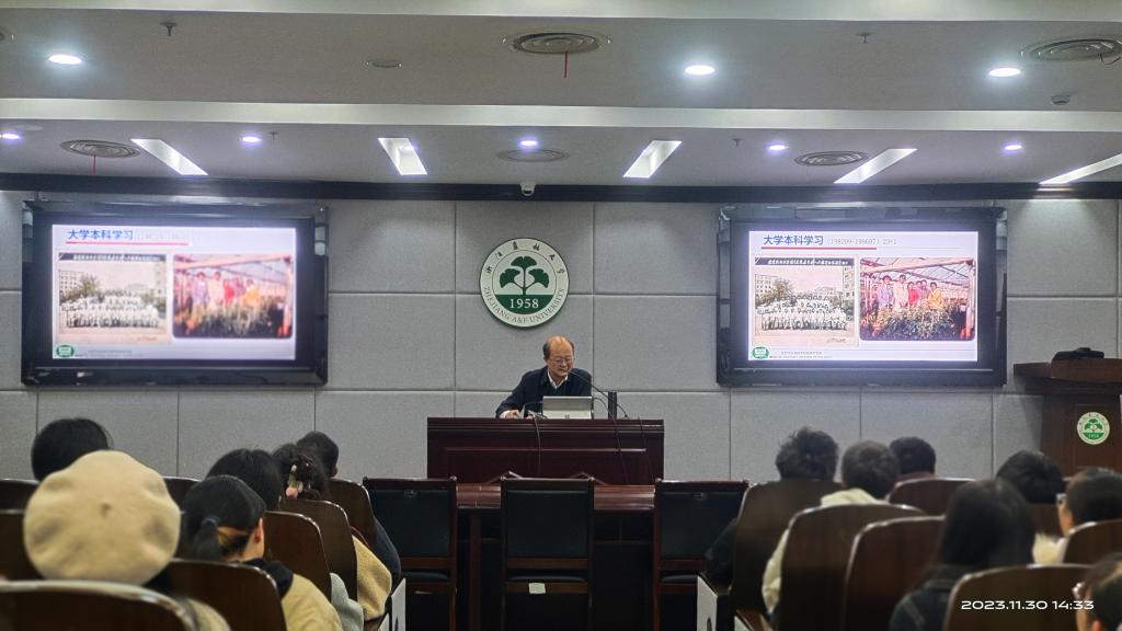 11月30日,北京市農林科學院蔬菜研究所研究員許勇應邀做客園藝大講堂(第十講)暨新生研討課,為學院師生作了題為“甜蜜事業 幸福生活 ”的專題報告。2023級全體本科新生和學科專業教師參與學習和交流。園藝科學學院院長崔霞主持報告會。