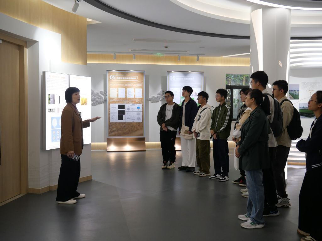 在中國水稻研究所展覽館,徐青老師給學生們講解水稻起源、生長周期以及中國水稻研究所的概況、科技創新、使命任務等方面的內容,并圍繞“四個面向”“三個著力”詳細介紹中國水稻研究所在面向世界農業科技前沿、面向國家重大需求、面向人民生命健康面和向全球農業綠色發展培育出一系列優良水稻品種,解決水稻生產關鍵技術難題,獲得了140多個科技成果獎和取得的最新科研成果。隨后大家觀看了中國水稻研究所發展歷程的視頻短片,讓學生們對水稻的分類起源、栽培技術和在中國糧食的重要性有了更為深刻的認識。
