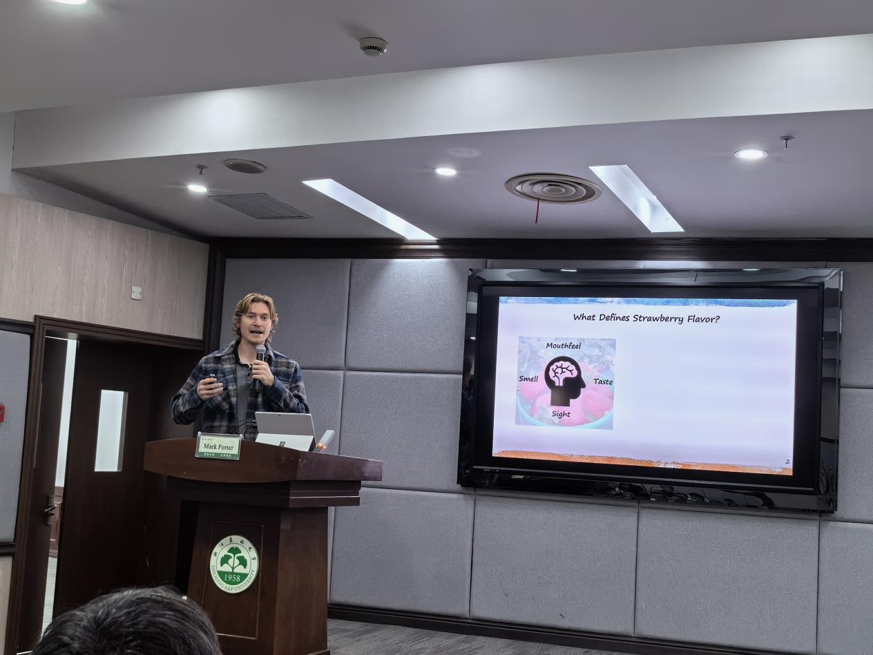 Mark Porter博士以“Gene Discovery and Genomic Prediction for improved Strawberry Flavor”為題,介紹了在草莓風味研究上的進展;Kaitlyn Vandracek博士以“Identifying the Genetic Mechanisms for Manipulation of Strawberry (Fragaria ×ananassa) Runner Production”為題,介紹了草莓匍匐莖產生的機制研究;沈鍇博士以“A Comparative Study of Precision 3D Reconstruction of Strawberry Plants for Non-Destructive Biomass Prediction”為題,介紹了通過3D影像精確測定草莓生物量的方法。