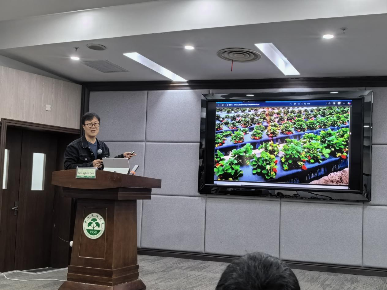 Seonghee Lee副教授圍繞佛羅里達大學草莓育種團隊概況、美國和佛羅里達州草莓種植、育種指標選擇、育種過程、美國近期對基因編輯品種的監管、未來育種方向等多個方面,為大家作了題為“Advances in Genomics-Enabled Strawberry Breeding in University of Florida”的學術報告,詳細介紹了其團隊應用基因技術改善草莓風味、提高抗病性和果實品質的研究進展。