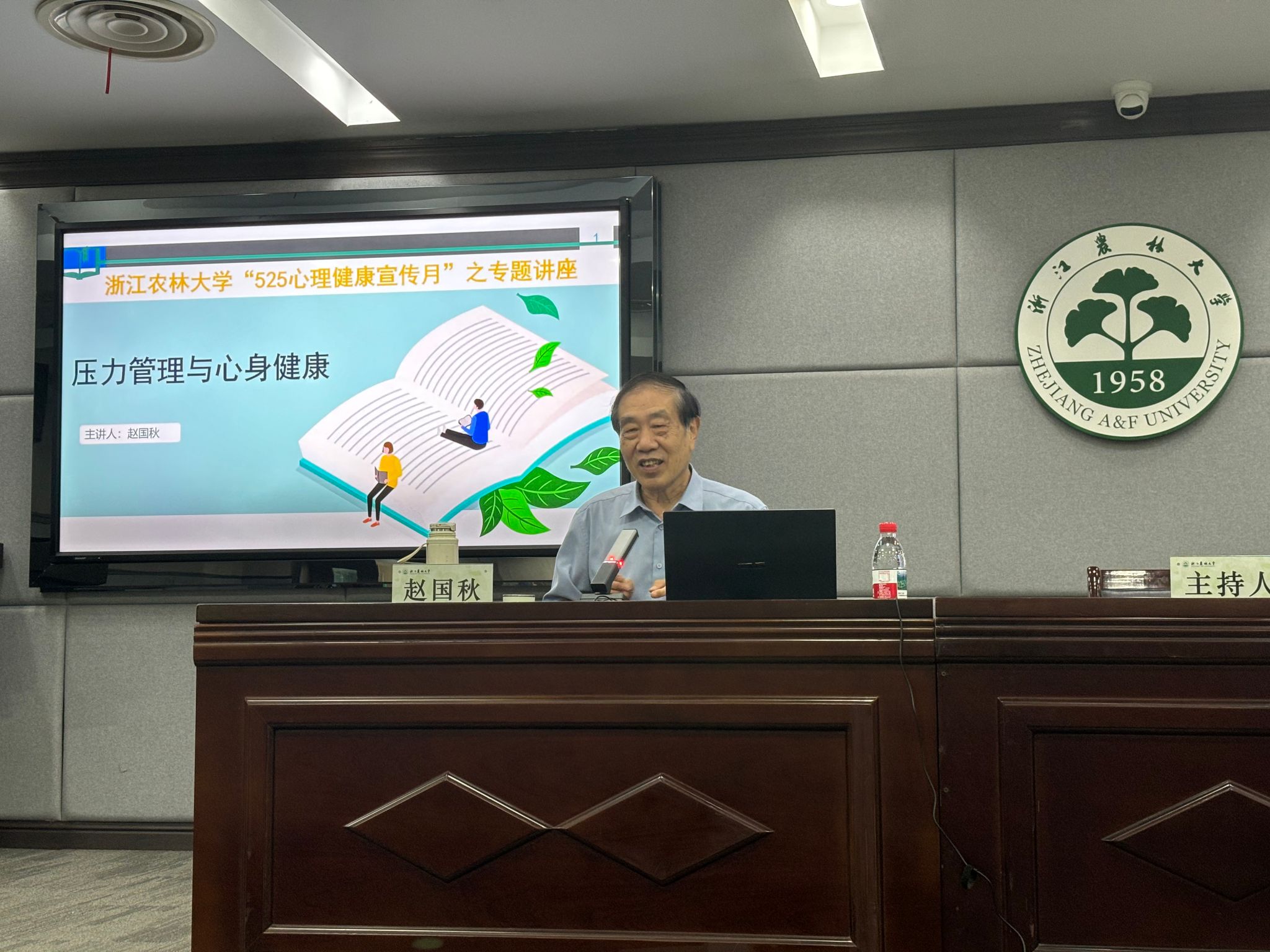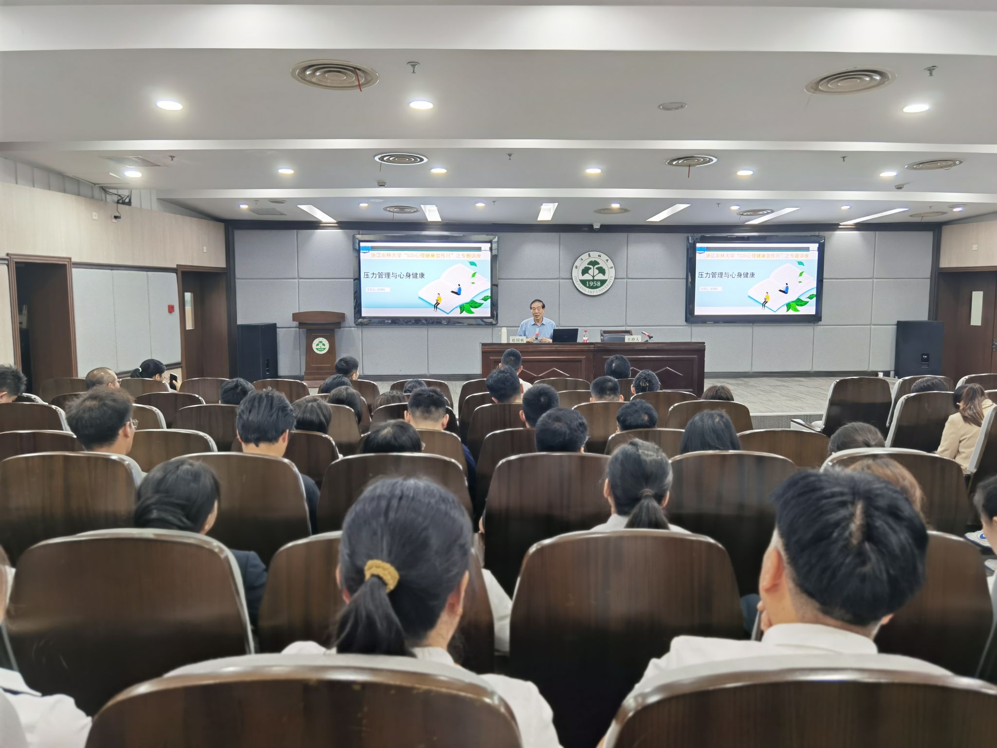 5月14日下午,“壓力管理與身心健康”的心理講座在東湖校區(qū)圖書館小報(bào)告廳舉行。此次講座由學(xué)工部部長周曉光主持,特別邀請(qǐng)全國優(yōu)秀科技工作者、中國心理衛(wèi)生協(xié)會(huì)名譽(yù)理事長、原杭州市第七人民醫(yī)院院長趙國秋教授擔(dān)任主講嘉賓,校黨委副書記倪建均出席會(huì)議,學(xué)工部負(fù)責(zé)人、各學(xué)院的學(xué)生工作負(fù)責(zé)人、全體輔導(dǎo)員、公寓輔導(dǎo)員以及班主任代表共100余人共同參與。