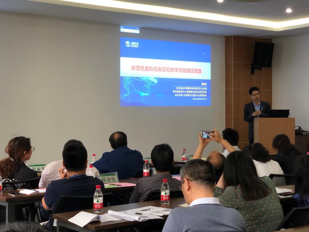 孫建林教授和陳美松總經(jīng)理分別作了《虛擬仿真實驗教學(xué)體系的構(gòu)建與應(yīng)用》、《示范性虛擬仿真實驗教學(xué)項目建設(shè)思路》專題報告。