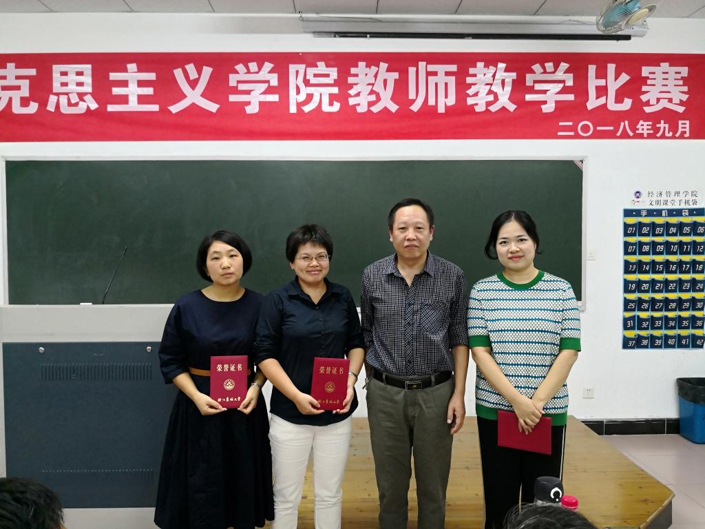參賽教師經(jīng)過前期精心準(zhǔn)備和現(xiàn)場(chǎng)激烈比賽,根據(jù)評(píng)委打分,宮瑜教師獲一等獎(jiǎng),王雪莉、 劉妙桃老師獲得二等獎(jiǎng),顏曉紅、時(shí)會(huì)永、單巍老師獲得三等獎(jiǎng),《綱要》教研室獲得團(tuán)體優(yōu)勝獎(jiǎng)。