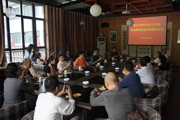 9月14日上午,文化學院創意創業導師聘任會在中國茶謠館舉行。學院黨政領導班子全體成員出席了本次會議。校社會合作處處長戴文圣、外語學院院長韓慧也應邀參會。會議由文化學院院長王旭烽主持。