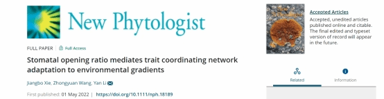 森林生態學研究團隊在New Phytologist 發表氣孔導度調控方向研究論文