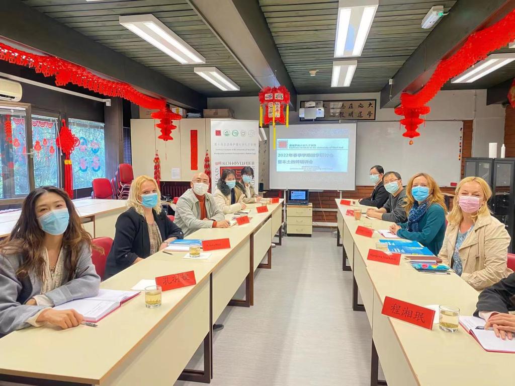 當地時間4月28日,諾維薩德大學孔子學院舉行本土教師培訓及春季學期教學研討會,全體中方及本土漢語教師娜塔莎佩西奇(Natasa Pesic)、歷碧彩?庫達諾芙(Ljubica Cudanov)和瑪麗安娜?馬爾科維奇(Marijana Markovic)參加。會議由中方院長陳晦主持。