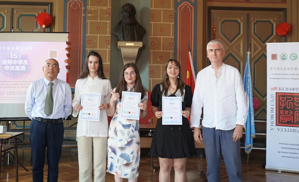 經(jīng)過激烈角逐,來自貝爾格萊德語言高中的希希(Nada Simi?)摘取了高級(jí)組桂冠,將代表塞爾維亞參加“漢語橋”世界中學(xué)生中文比賽總決賽。來自卡爾洛夫茨語言高中的凱瑟琳(Katarina Zindovic)奪得初級(jí)組冠軍。