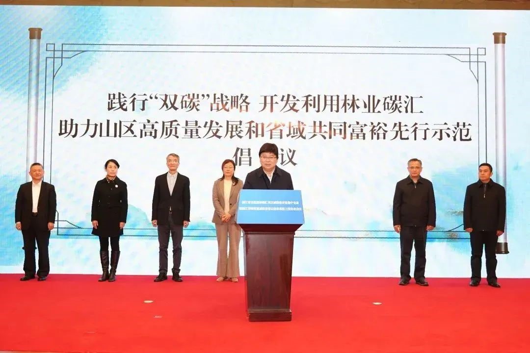 安吉縣竹林碳匯(碳普惠)項目成功登記備案,被納入首批浙林碳匯項目減排量,項目區位于安吉縣孝豐鎮橫溪塢村,按照本次交易價格100元/噸計算,實現竹農增收210.46萬,惠及308戶竹農。圍繞開發利用林業碳匯,助力推動山區高質量發展和省域共同富裕先行示范,胡俠代表省林業局、省發展改革委、省生態環境廳、省機關事務局、浙江銀保監局、省法院、省檢察院七部門,宣讀了《踐行雙碳戰略開發利用林業碳匯助力山區高質量發展和省域共同富裕先行示范倡議》,倡導全社會共同參與,實施固碳增匯專項行動,推進“竹木代塑”“竹木代鋼”,發揮林業碳匯功能效益,推進林業碳匯價值轉化。