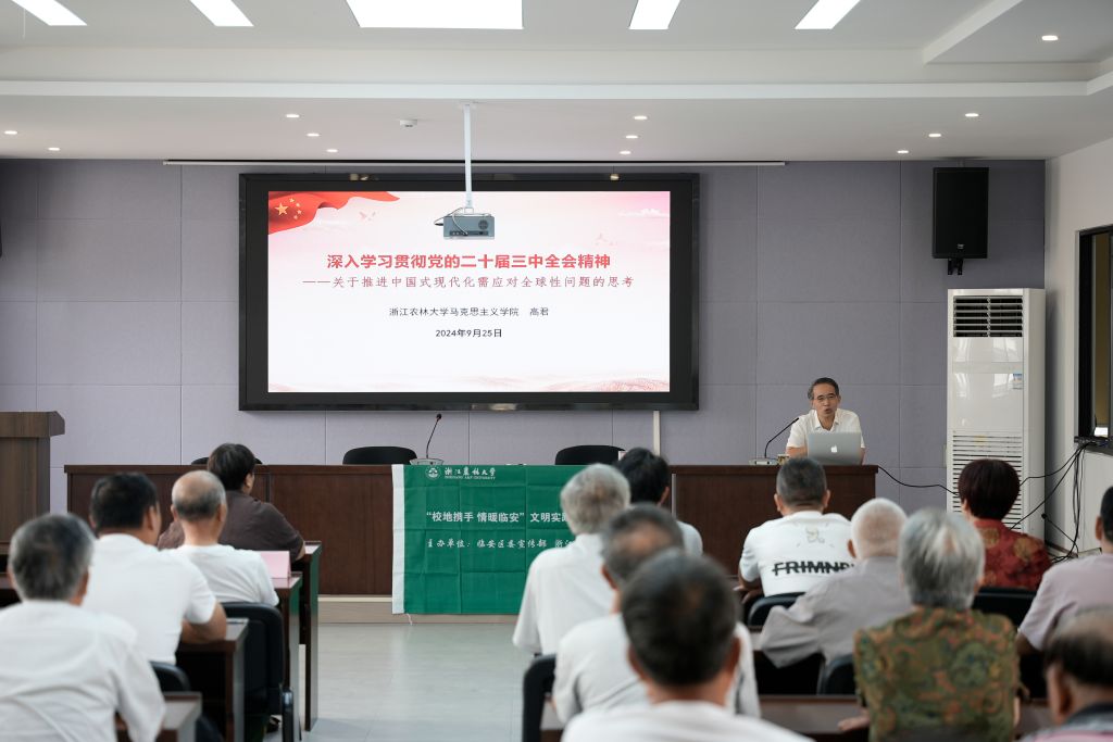 高君為河橋鎮全體黨員作題為《深入學習貫徹黨的二十屆三中全會精神-關于推進中國式現代化需求應對全球性問題的思考》的專題黨課,圍繞“進一步全面深化改革、推進中國式現代化”這一主題,從當今世界的大勢、中美大國的博弈和我們應有的考慮三個方面進行了深入闡釋,內容豐富、深入淺出,贏得在場每一位村民黨員的熱烈反響與高度評價。
