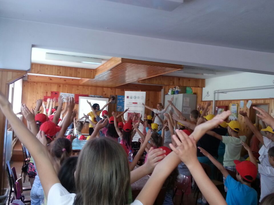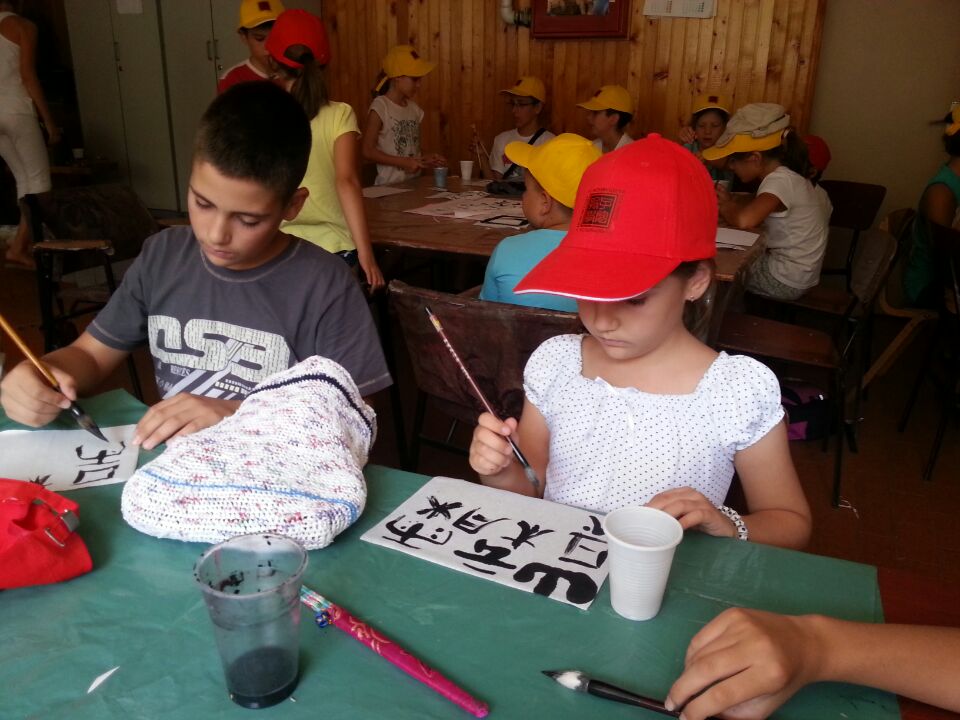 活動首先由本土漢語教師Natasa手提中國文化寶箱,為小學(xué)生們介紹文房四寶、扇子、毽子、對聯(lián)、剪紙、絲綢等具有中國文化象征的物件。并通過對中國城市、山水、建筑、發(fā)明等的提問與現(xiàn)場學(xué)生展開了積極的互動,場面熱烈。