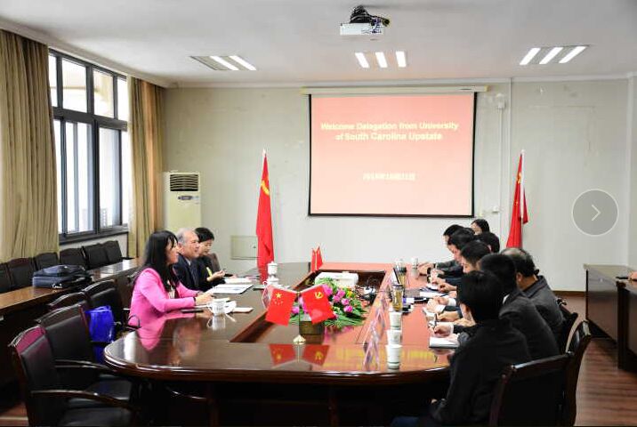 理學院院長周國泉首先代表學院對Clifton P. Flynn教授表示歡迎,詳細介紹了學院的發展程、學科專業、教師團隊、科研與教學工作、學生就業等情況。會前,Clifton P. Flynn還參觀了學院的文化氛圍建設和光學工程學科的科學研究成果展。理學院近年來的快速發展以及所取得的成績受到了Clifton P. Flynn教授的高度贊賞及肯定。Clifton P. Flynn教授詳細地介紹了南卡羅萊納大學上州分校的相關情況,特別是各專業的核心課程、國際合作交流政策以及國際生在該校的學習生活相關情況。南卡羅萊納大學上州分校和理學院的信息與計算科學專業和應用統計學專業早已有“2+2”的合作。會上雙方進一步確認了數學和統計學方面相對應課程的一致性,并初步達成了一個月游學交換的合作愿意,為下一步雙方在師資共享以及學生出國讀研方面的深度合作奠定了良好的基礎。