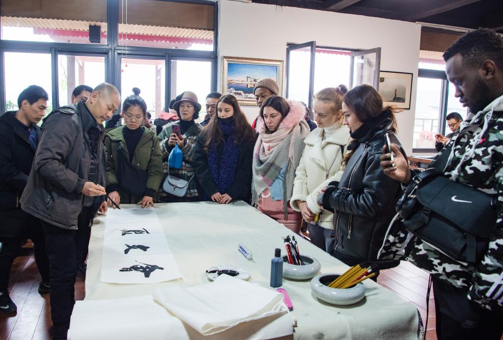 受聘導(dǎo)師們?yōu)榱魧W(xué)生展示了剪紙、書法和繪畫等中國傳統(tǒng)藝術(shù)創(chuàng)作,深受留學(xué)生們的喜愛。學(xué)生們紛紛地向?qū)焸冋埥蹋瑘雒鏌崃摇?/span>