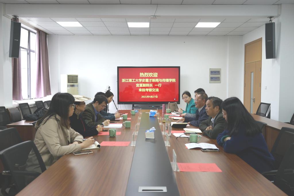4月27日,浙江理工大學史量才新聞與傳播學院副院長宮富一行5人來文法學院考察交流。院長王長金、學院相關負責人以及中文學科教師代表參加活動。